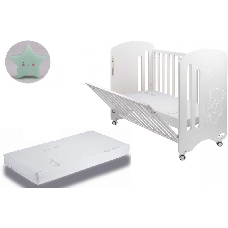 Cuna Lovely Premium + Colchón con REGALO lampara quitamiedos estrella azul