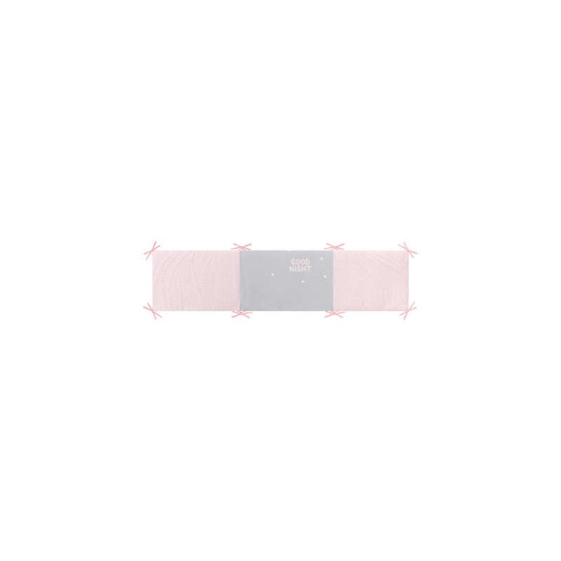 Protector estampado desenfundable confeccionado en suave algodón percal 200 hilos. Adaptable para cunas de 60, 70 y 80 cm de ancho, que se sujeta fácilmente gracias al sistema de cintas. Evita que tu bebé se pueda golpear con los barrotes de la cuna. Con su alegre y moderno diseño será una práctica y bonita forma de proteger el descanso de tu bebé, además de completar el conjunto en su cunita. Admite lavadora a 40º C y secadora a baja temperatura. Lavar colores oscuros por separado.