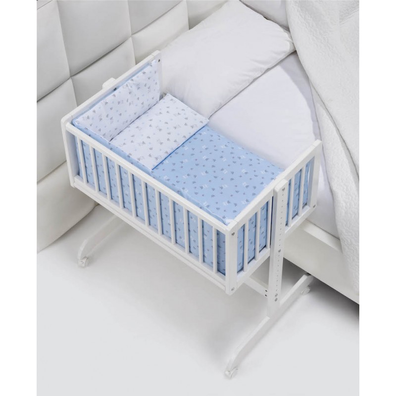 • ✅ INCLUYE - La minicuna colecho en madera Blanca. (Medida exterior: 55x85x90 cm) - Colcha desmontable con relleno. - Cojín almohada. - 2 Protectores o chichoneras con cremallera una más larga y otra más corta en la barandilla extraíble. - Colchón minicuna. (50x80 cm) - Con 4 ruedas blancas con freno.