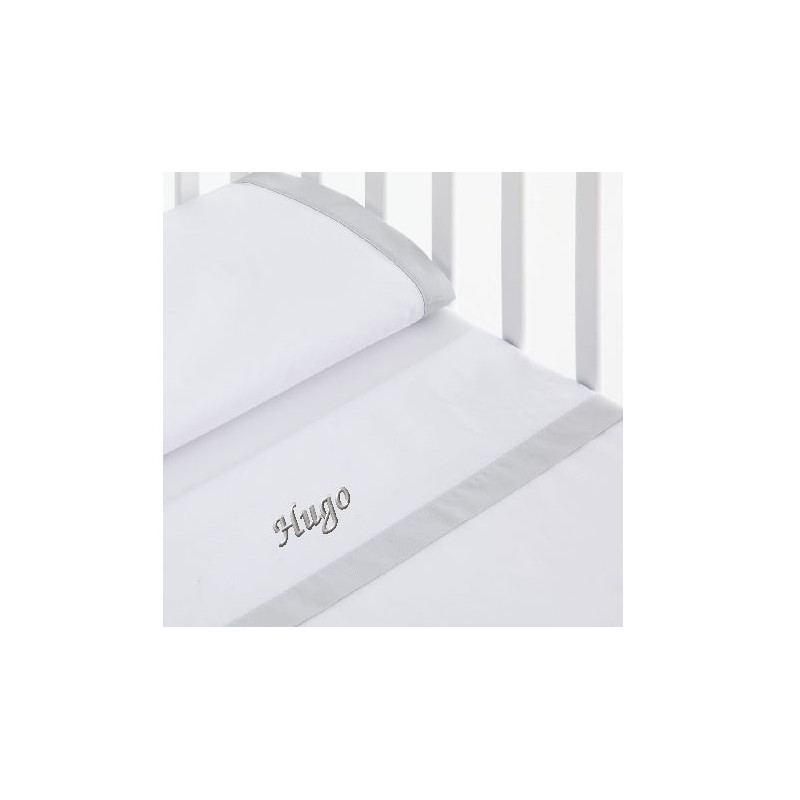 Incluye: sábana personalizada con bajera ajustable, sábana encimera y funda de almohada, en una caja decorativa.